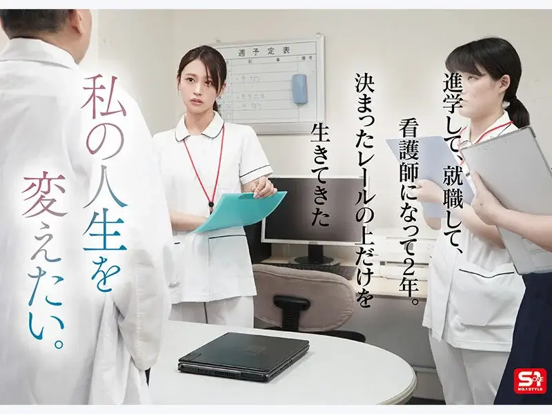 桜みおさんの2作目の作品。2025年12月19日に動画配信、12月23日にDVD/Blu-rayの発売。患者さんに痴女SEX、元カレにカミングアウトSEX、夜勤中に患者さんをフェラ、3P SEX。