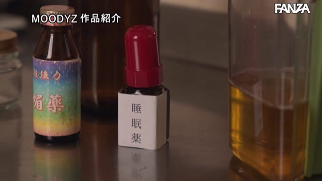 部屋には睡眠薬と超強力媚薬の瓶が転がっています。